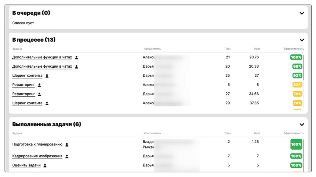 Работая с задачами, исполнители запускают таймер в карточке и обязательно указывают в комментарии, что именно они делали в указанное время. Все это формируется в отчет о фактически затраченном времени.