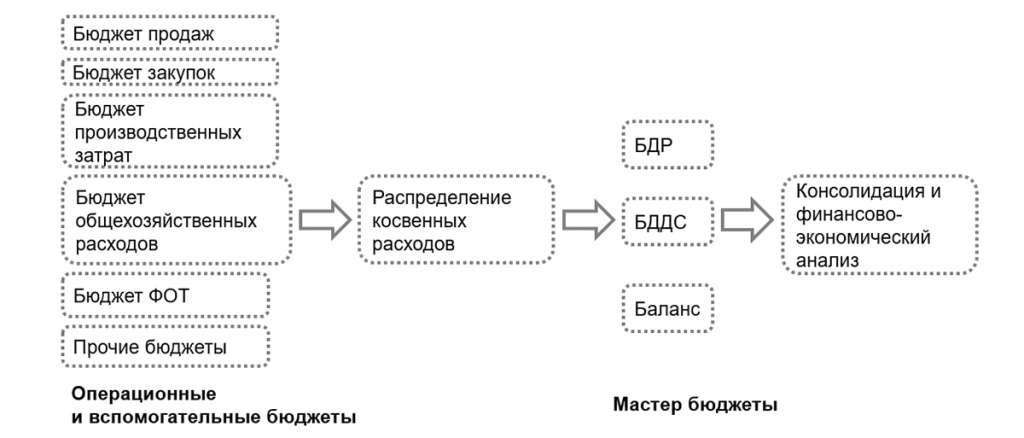 Но каждое подразделение должно отвечать за свой кусочек. Они всё равно остаются жить где-то в рамках своего функционала, но этот функционал должен соответствовать функционалу параллельного подразделения, чтобы можно было их свести на выходе в единую форму. Собрать факт- и мастер-бюджет в том формате, который нужен управляющему комитету.