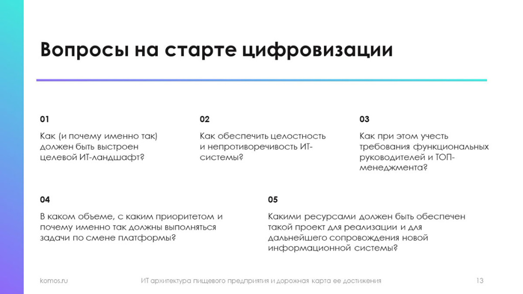 ИТ-архитектура пищевого предприятия и дорожная карта ее достижения