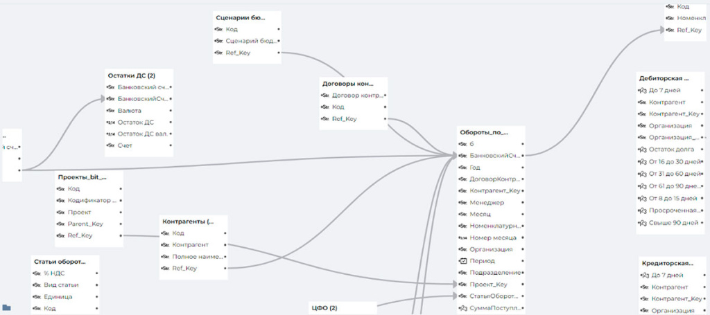 Данные из различных учетных систем загружаются в ваше SQL-хранилище, после чего попадают в BI-систему. На основании загруженных данных строится модель, и на этой модели строятся дашборды. А сами дашборды помогают быстро воспринимать информацию, анализировать её и моделировать.