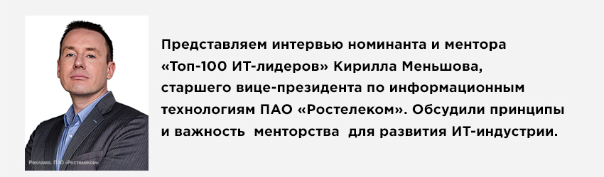 В этом году в рамках рейтинга «Топ-100 ИТ-лидеров» Global CIO запускает специальный проект «Менторство с Меньшовым», предоставляя возможность профессионалам сообщества оставить заявку на программу менторства.