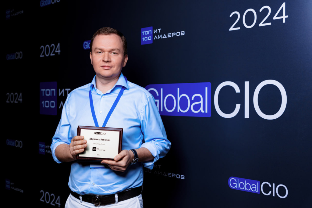 30 мая 2024 г. Михаил Книгин вошел в рейтинг «Топ-100 ИТ-лидеров» Global CIO. Фото с церемонии награждения предоставлено Global CIO.