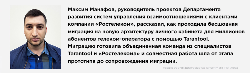 Бесшовная миграция личного кабинета для телекома с помощью Tarantool