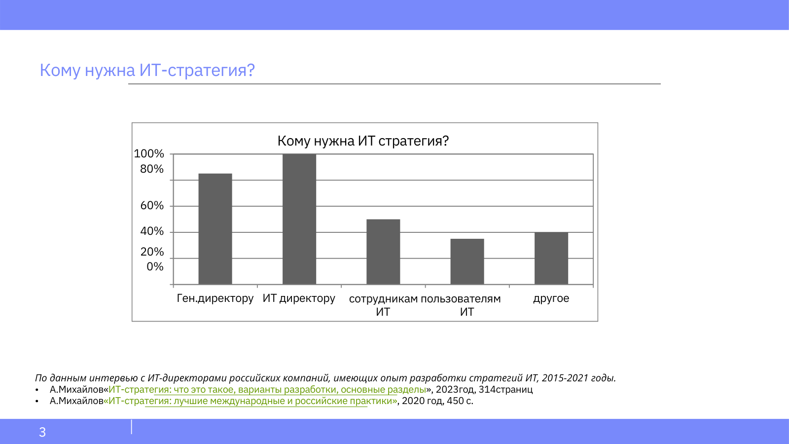 Примечание: эти и другие рисунки предоставлены Александром Михайловым (компания «Консалтинг по управлению ИТ») и подготовлены на основании данных, проведенных им интервью с ИТ-директорами российских компаний, имеющих опыт разработки стратегий ИТ-2015-2021 годов.