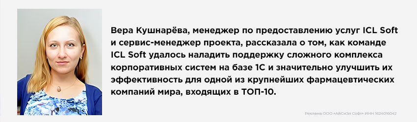 Развитие и сопровождение 1С решений для международной фармкомпании