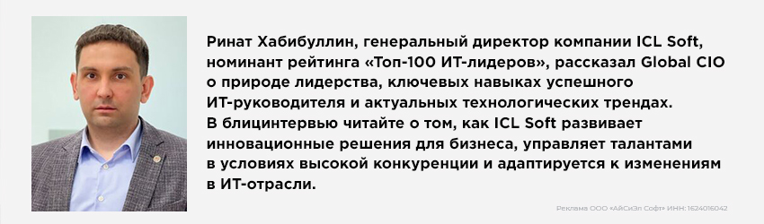 Современный ИТ-руководитель должен быть не просто экспертом в технологиях, но и сильным управленцем. Важно понимать потребности рынка и заказчиков, эффективно выстраивать командную работу и уметь не только быстро адаптироваться к актуальным запросам, но и стремиться к улучшению. Лидеры должны не просто реагировать на изменения, а сами быть источником изменений, которые могут принести реальную ценность бизнесу и клиентам. В ICL Soft мы поддерживаем культуру, в которой каждый руководитель не только развивает свою экспертную область, но и вносит вклад в создание и внедрение новых технологий, отвечающих на запросы рынка.