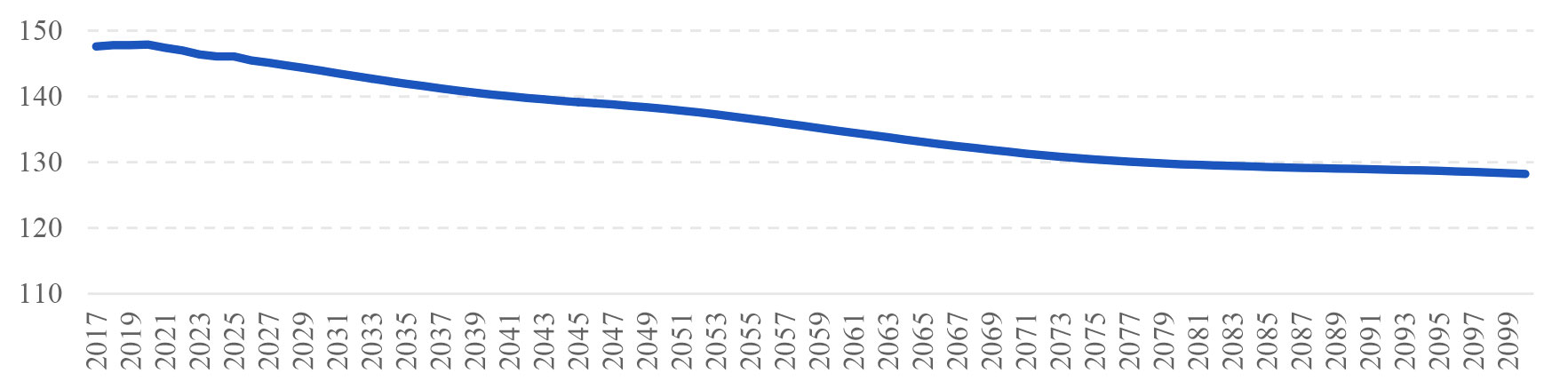 Рисунок 1. Прогноз численности населения в РФ, млн чел.