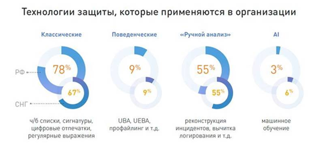 Также показательны цифры исследования о том, как в инфобезе приживаются современные трендовые технологии.