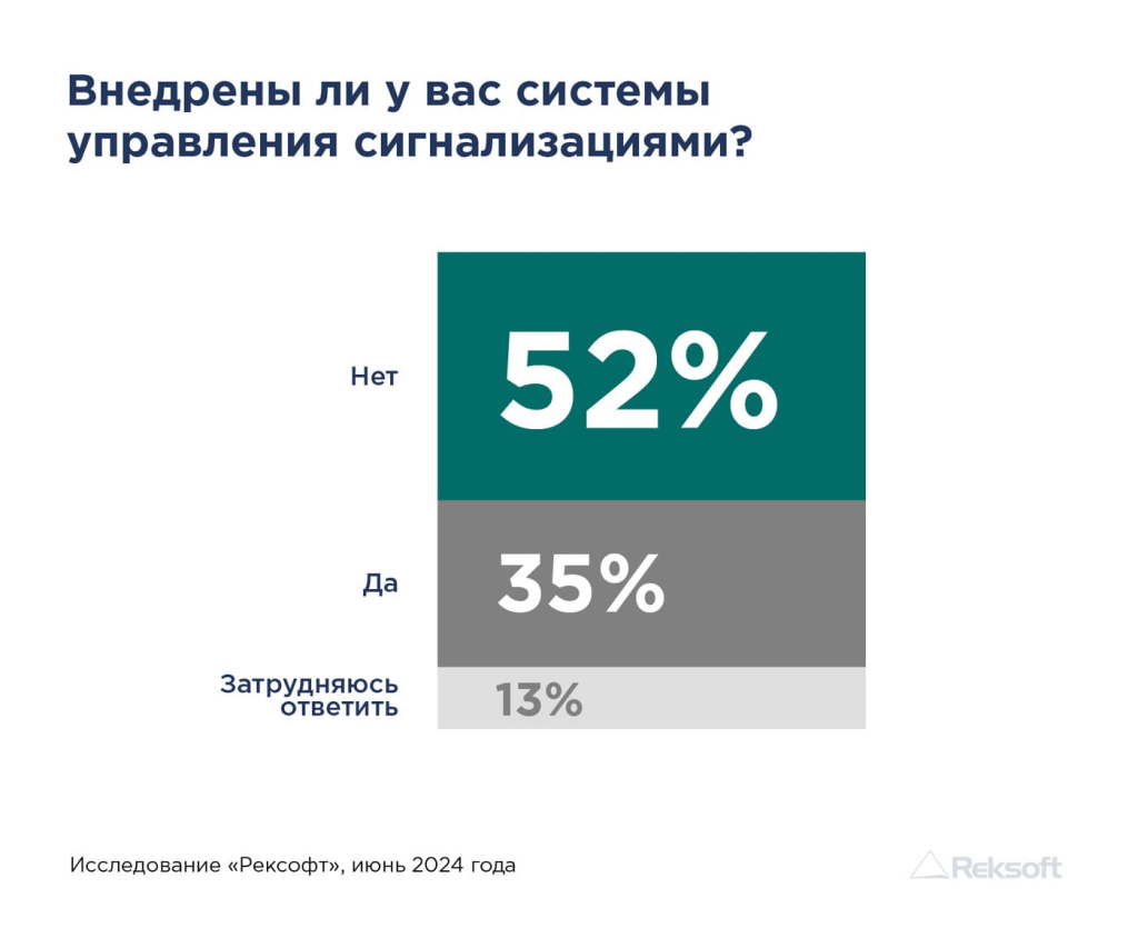 В свою очередь, важность управления сигнализациями отметили 84% респондентов, однако только 35% участников опроса активно внедряют соответствующие системы на производстве. Такая ситуация объясняется недостатком ресурсов для внедрения новых практик, а также нехваткой квалифицированных специалистов, способных не только реализовать эти системы и методики, но и обеспечить их эффективное функционирование. Кроме того, отсутствие четких нормативных документов и философии по управлению сигнализациями может затруднять процесс интеграции подобных решений в существующие производственные системы.