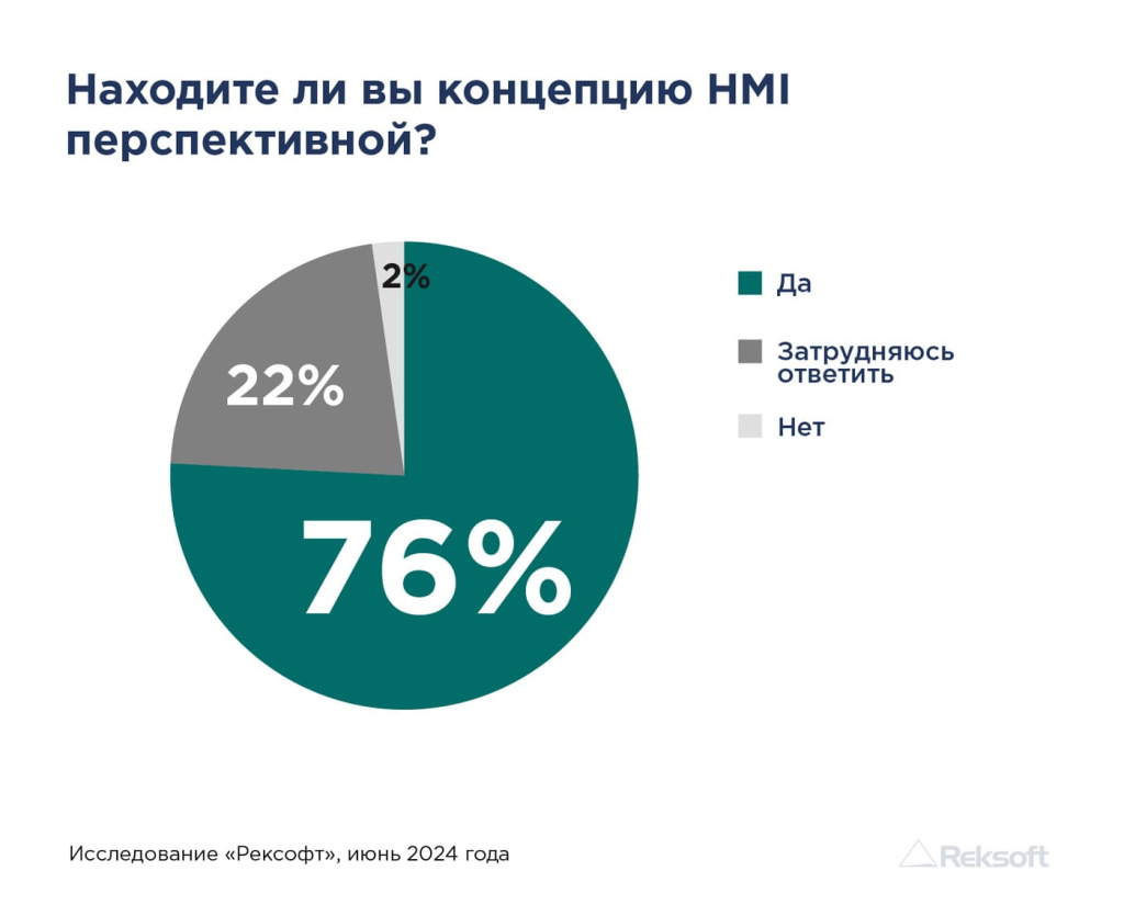 Тем не менее, согласно результатам опроса, более 75% респондентов видят перспективы в развитии направления усовершенствованного HMI. Переход к высокоэффективной модели человеко-машинного интерфейса и модернизация процессов работы операторов – обязательные шаги для роста эффективности систем мониторинга и сокращения числа сбоев в работе оборудования на производстве.