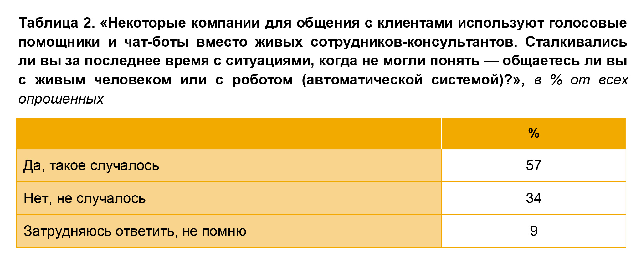 Аналитический центр НАФИ провел исследование[3], чтобы выяснить, насколько россияне удовлетворены общением с «умными» чат-ботами и ассистентами и с какими трудностями сталкиваются.