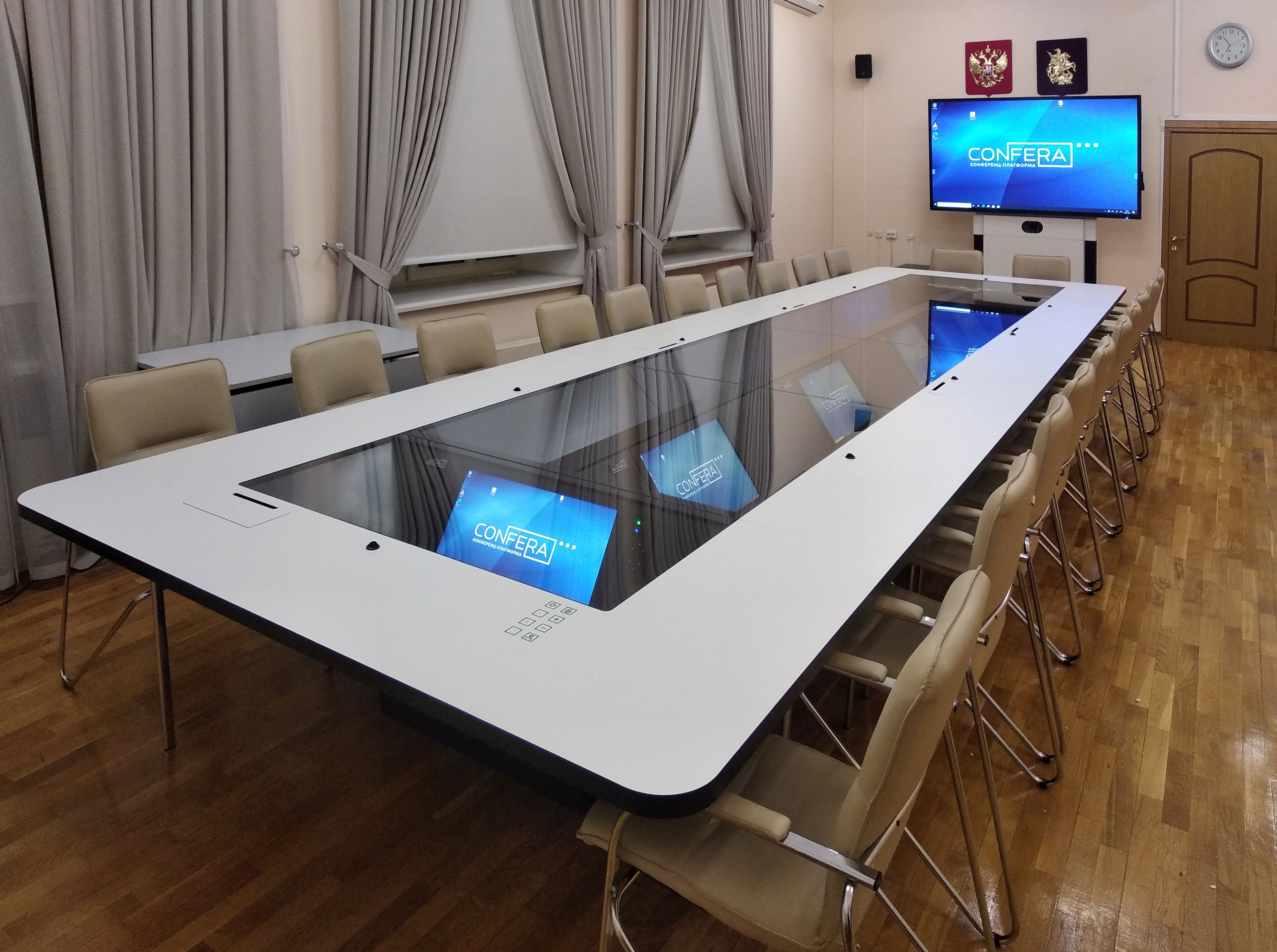 Для модернизации залов совещаний МГПУ было разработано уникальное решение, объединяющее в себе все современные технологии, необходимые для проведения совещаний с удаленными пользователями, и доступную для университета стоимость: конференц-платформа CONFERA, состоящая из технологического конференц-стола стола CONFERA AViTable и медиацентра CONFERA View.Конференц-платформа CONFERA обеспечила единый пользовательский интерфейс в различных залах заседаний.