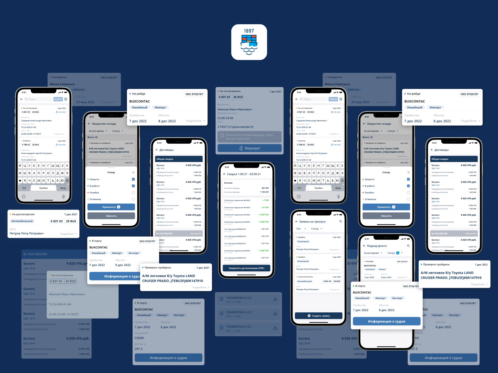 Задача спроектировать интерфейсы профессионального b2b-сервиса морского торгового порта, который позволяет на мобильном телефоне решать основные задачи по работе с портом.