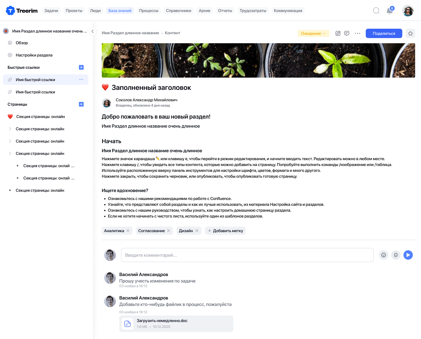 - Создание рабочих пространств и цифровых профилей сотрудников, которые сокращают время на обмен знаниями в организации, позволяют удобно их структурировать, хранить и разделять.
