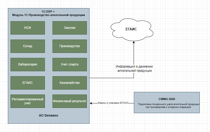 - Использовались 1C:ERP и модуль для 1С:ERP Производство алкогольной продукции