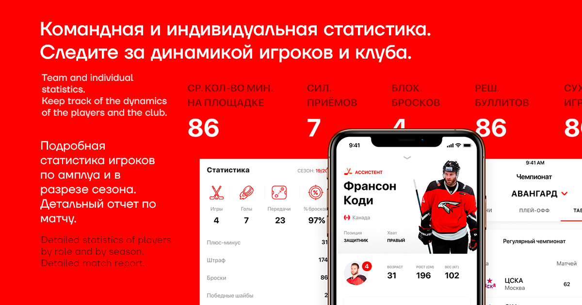 Отображение командной и индивидуальной статистики. Через приложение удобно следить за статистикой клуба и игроков. Доступна статистика игроков по амплуа и в разрезе сезона. Доступны детальные отчеты по матчам.