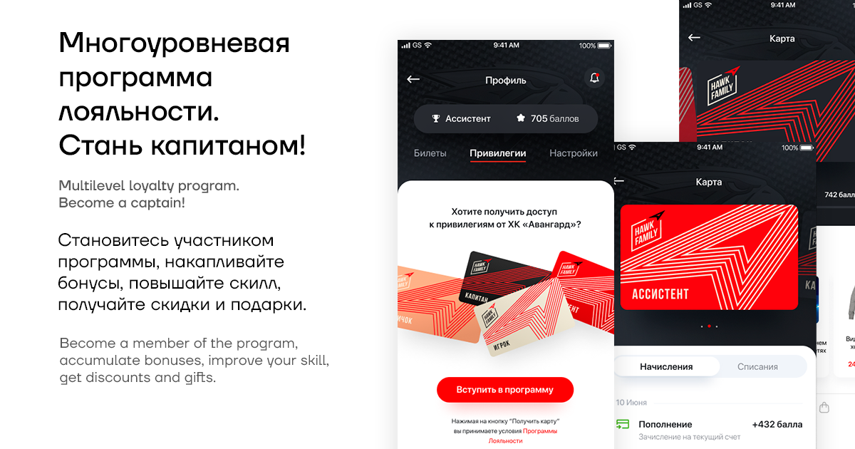 Мобильное приложение сочетает внутри новостные функции, индивидуальные и командные статистические данные, масштабную многоуровневую программу лояльности, возможность заказа атрибутики в приложении и функционал заказа еды на арене.