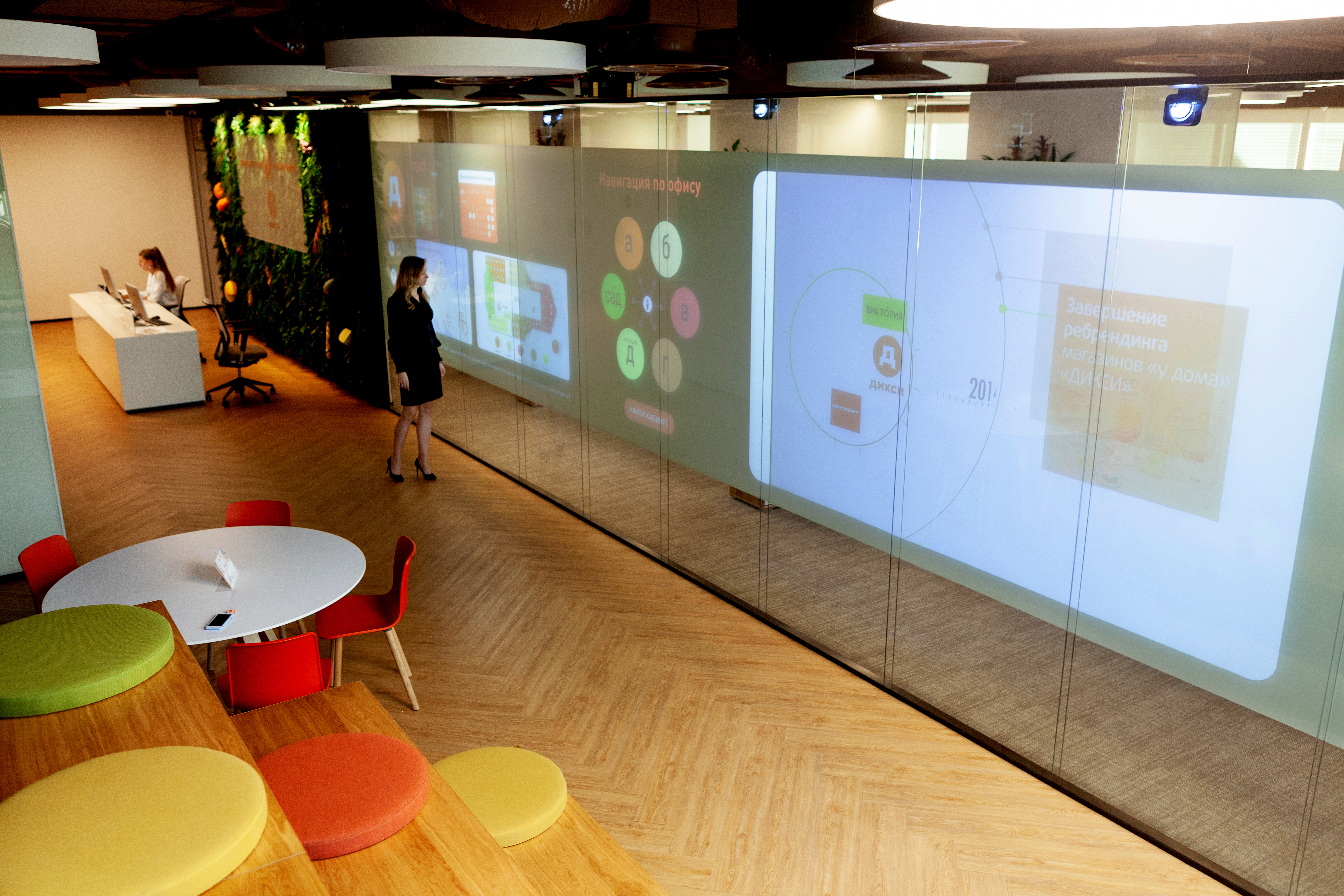 - Инсталляция установлена в open space главного офиса ГК «Дикси» в Москве. разделяя рабочую зону и зону reception.