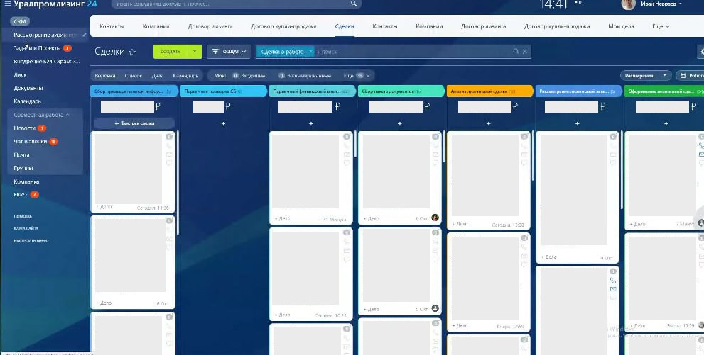 Главным преимуществом перехода на Битрикс24 стала автоматизация процесса одобрения и заключения лизинговой сделки и подготовка лизингового договора. Сейчас ответственный за сделку запускает процесс согласования с автоматическим подбором участников согласования и рассылкой уведомлений. Участники согласования могут проголосовать дистанционно, а по результатам автоматически формируется пакет необходимых документов. Загрузка графика платежей производится непосредственно из расчета в Excel, в последующем загруженный график автоматически передается в учетную систему 1С, что исключает риск возникновения ошибок при занесении данных. Все это существенно сократило временные затраты на процесс согласования, оформления и учета сделок по лизингу.