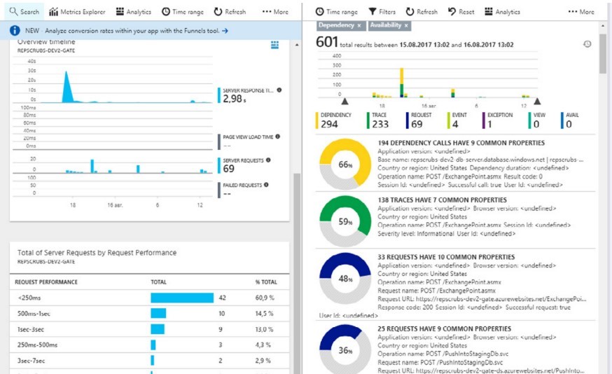 • SyncIT использует Microsoft Application Insights для аналитики, счетчиков производительности и хранения журнала событий. Приложения выполняют синхронизацию в реальном времени.