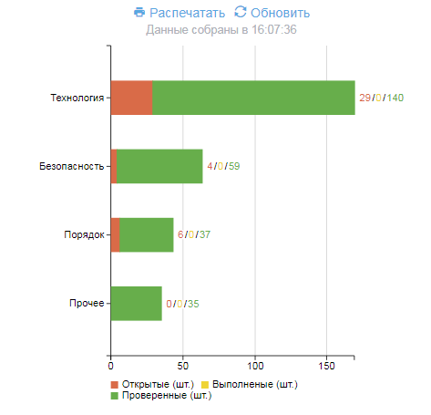- Получение сравнительной оценки контрагентов по времени устранения и количеству замечаний (оценка учитывается при проведении тендерных процедур)