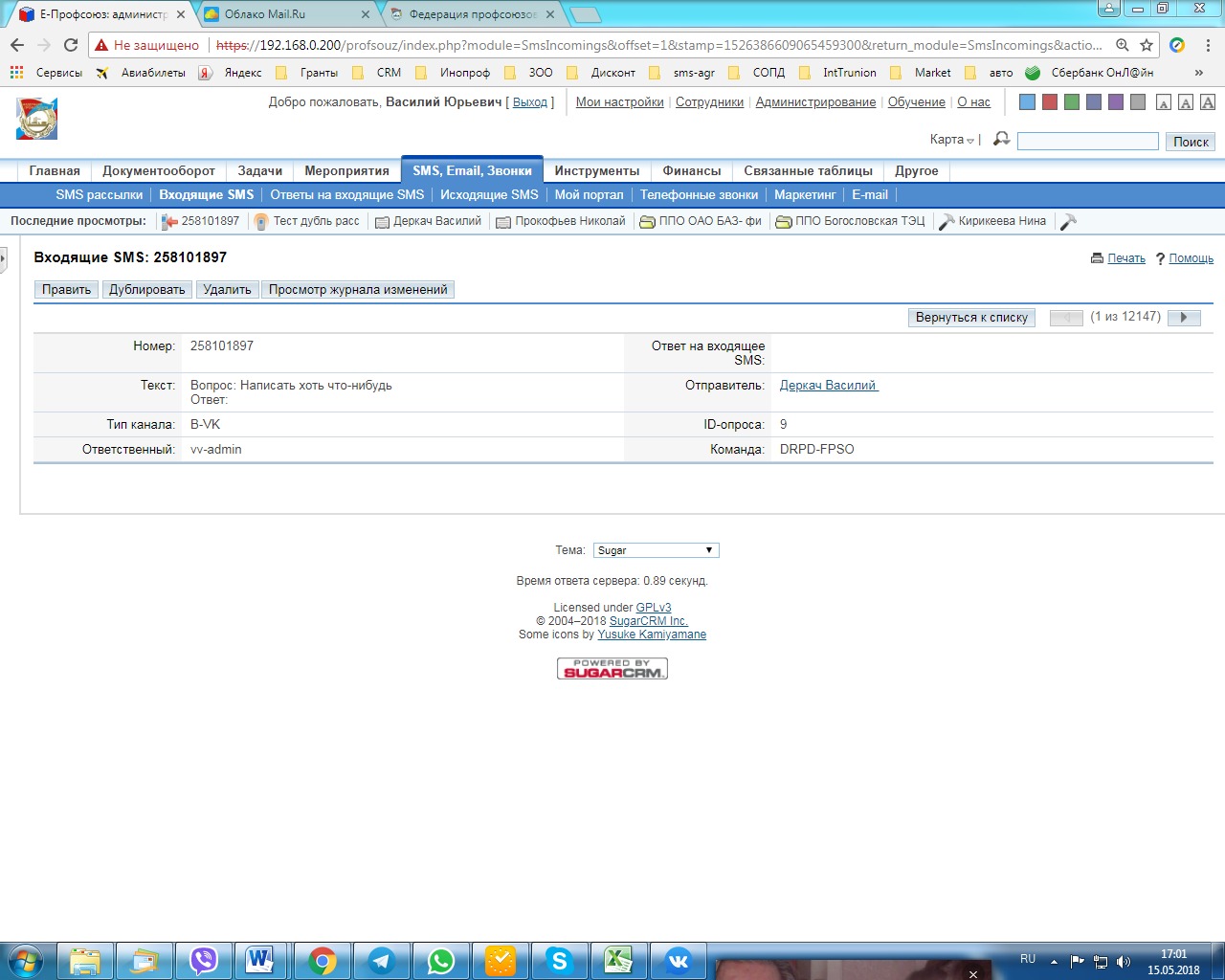 - Описание проекта Разработан чат-бот для социальной сети Вконтакте и мессенджера Viber. Диалоги и логику бота Заказчик может менять самостоятельно Главная сложность проекта заключалась в гладкой интеграции с существующей CRM заказчика. CRM ставил сторонний подрядчик, система представляет собой кастомную доработку open source решения. Этапы разработки и внедрения можно поделить на три важных вехи. 1. Создание методов двусторонней связи «бот-crm». Сложность – организационная, риски были нивелированы адекватностью всех заинтересованных сторон. Результат – бот дополняет и обогащает систему заказчика, а не вступает в конкуренцию с другими каналами связи. Заказчик начал экономить деньги с первого дня внедрения за счет замены СМС для участников, подключивших бота. Также выросло количество и качество обращений, пересылаемые юридические документы (Трудовой договор, exm) сразу же закреплялись за нужным профилем в crm, оказание помощи членам профсоюза значительно ускорилось и стало дешевле 2. Разработка «универсального метода создания дерева диалога». С учетом ограниченности ресурсов, заказчику было необходимо иметь возможность самостоятельно править диалоги, добавлять/удалять ветки, настраивать новые связи. Сложность – обеспечить простоту и надежность решения, риски нивелировали плотными контактами с заказчиком и системой автоматических бекапов. Результат – автономность заказчика, не имея возможности предусмотреть все возможные дополнительные функции или изменения законодательства, мы разработали продукт, который легко эволюционирует вслед за изменениями окружающей среды 3. Публикация фронтенда бота с расчетом максимального покрытия существующей и потенциальной ЦА. Бот должен быть един, но при этом присутствовать в разных соцсетях/мессенджерах. Изначально согласовывали ВКонтакте и Telegram. Сложность – случилось то, что случилось. Блокировка Telegram произошла за неделю, до сдачи проекта. Т.к. бот обрабатывает большой пласт персональных данных, вынести сервер за пределы РФ и просто объяснить пользователям как обойти блокировку мы не могли. Результат – оперативно опубликовали бота в Viber. При это с учетом специфики ЦА даже выиграли в охвате