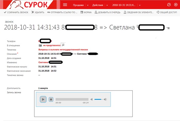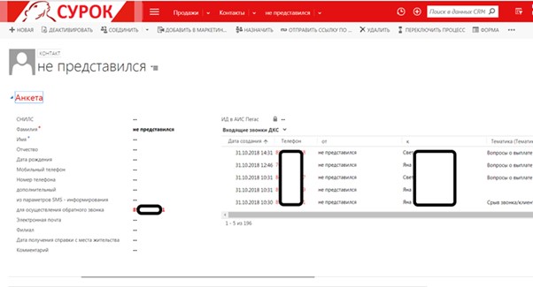 - сотрудники фонда могут в один клик звонить клиентам прямо из интерфейса CRM;