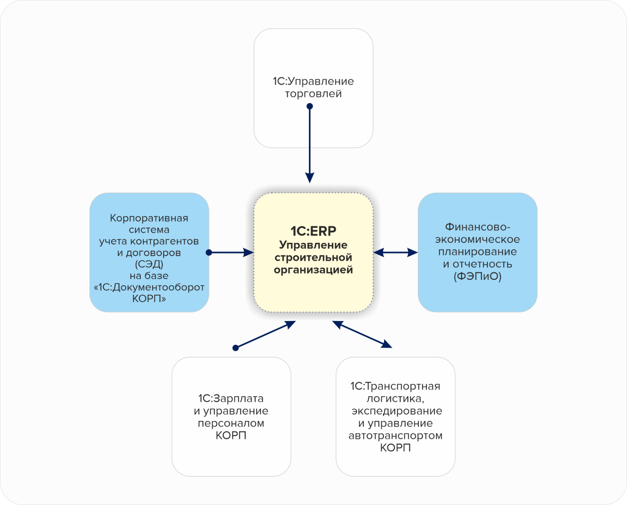 Руководство компании понимало, что нужно двигаться к цифровой трансформации бизнеса. В конце 2022 года на предприятии стартовал проект поэтапной автоматизации с использованием программных продуктов нового поколения на базе платформы «1С:Предприятие 8.3». Для построения единой информационной системы выбран комплекс программных продуктов 1C, базирующихся на специализированной отраслевой конфигурации «1C:ERP Управление строительной организацией 2» («1С:ERP УСО»).