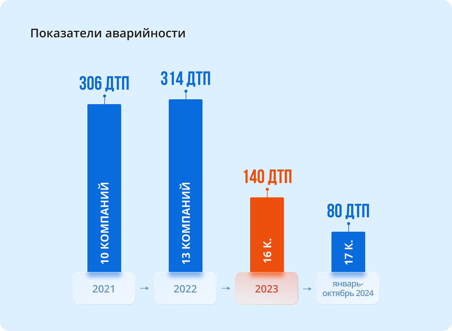Снижены годовые показатели аварийности (несмотря на рост числа транспортно-сервисных компаний).