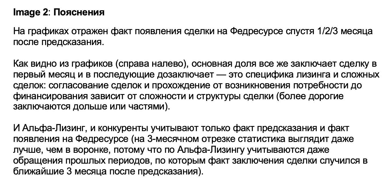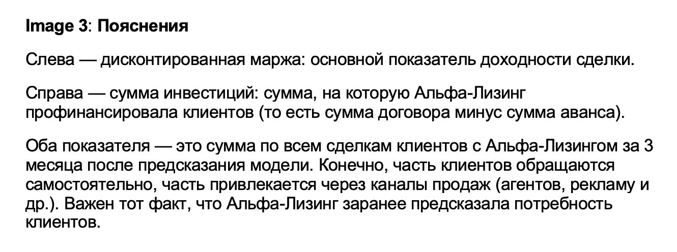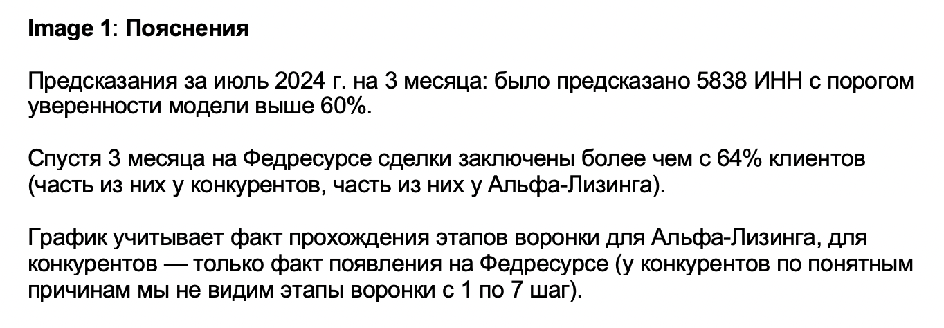 При этом 50% из рекомендованных ИИ новых организаций и 60% повторных клиентов впоследствии подписали договор с одной из лизинговых компаний.