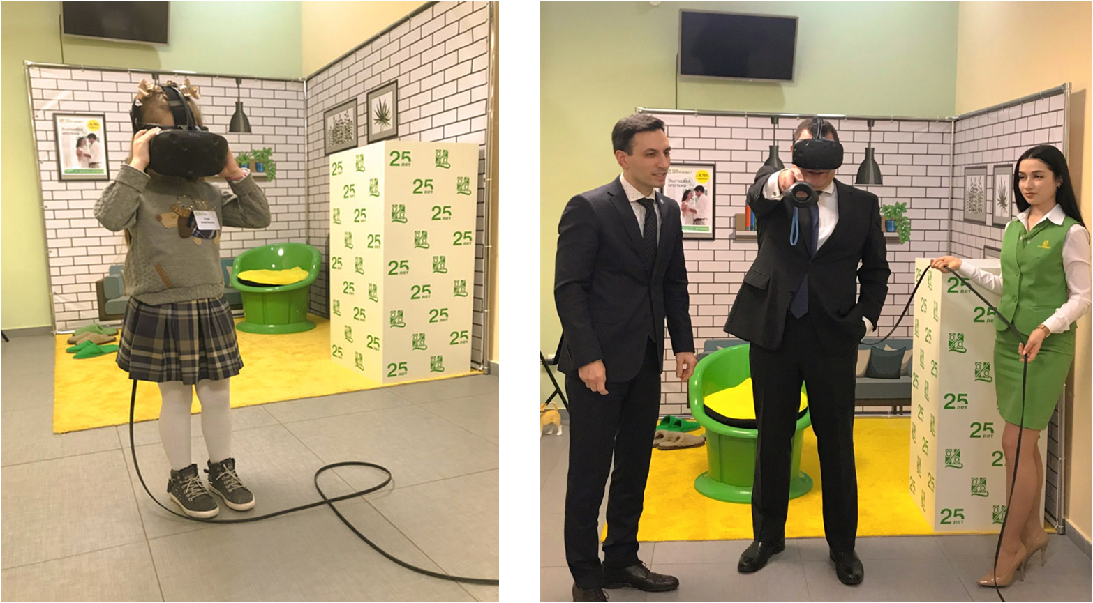 Для того, чтобы представить, как будет выглядеть покупаемая квартира до и после ремонта, какой будет вид из окна, клиент надевает виртуальный шлем и совершает виртуальную прогулку по квартире в стройварианте и после ремонта. Далее клиент снимает шлем и подписывает договор ипотеки в ПАО КБ «Центр-инвест» =).