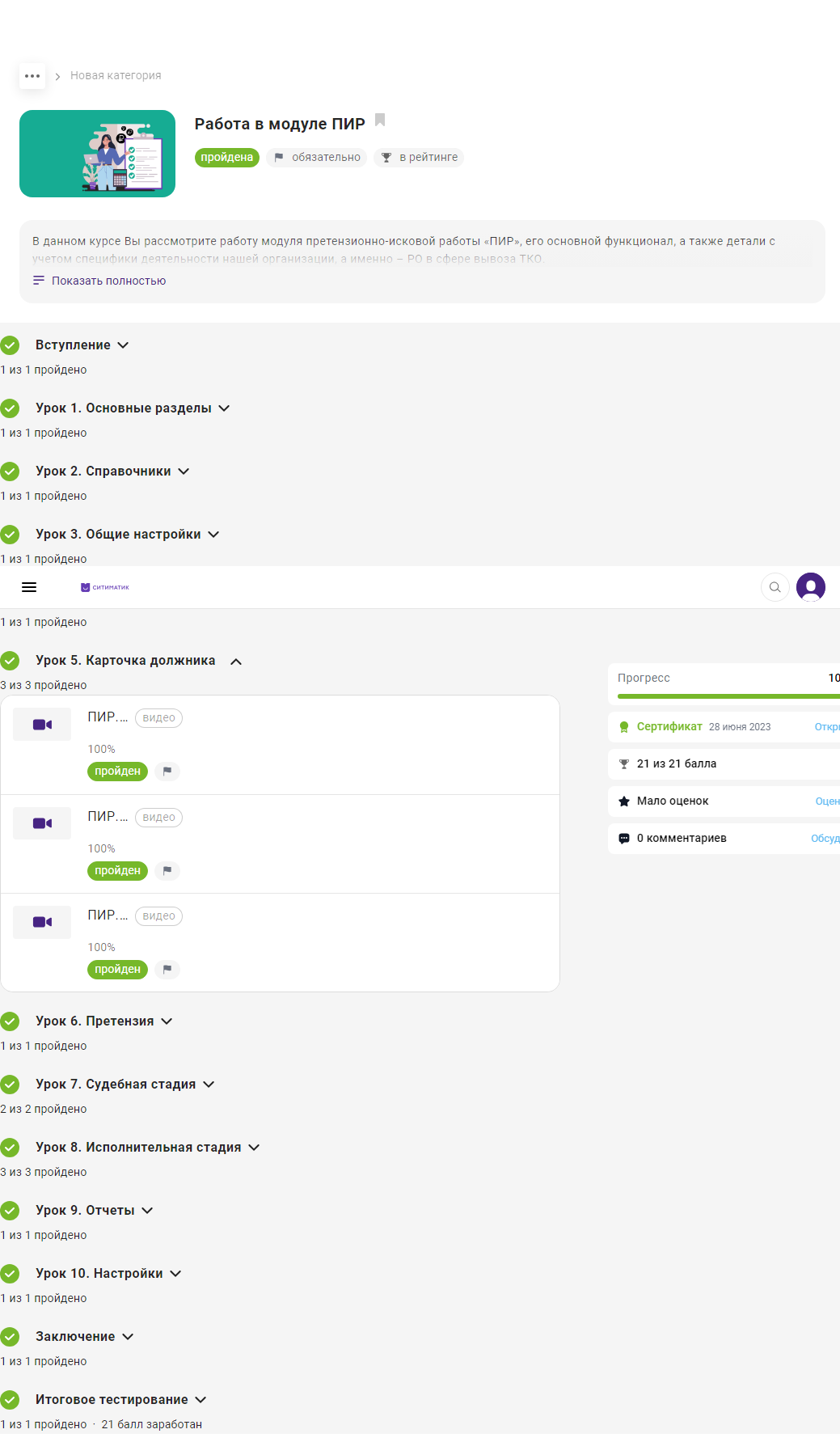- Маршрут движения карточки должника.pdfСитиматик_Этапы запуска системы по регионам.pngСкриншот корпортала «Ситиматик» с обучающим курсом «Работа в модуле ПИР».png