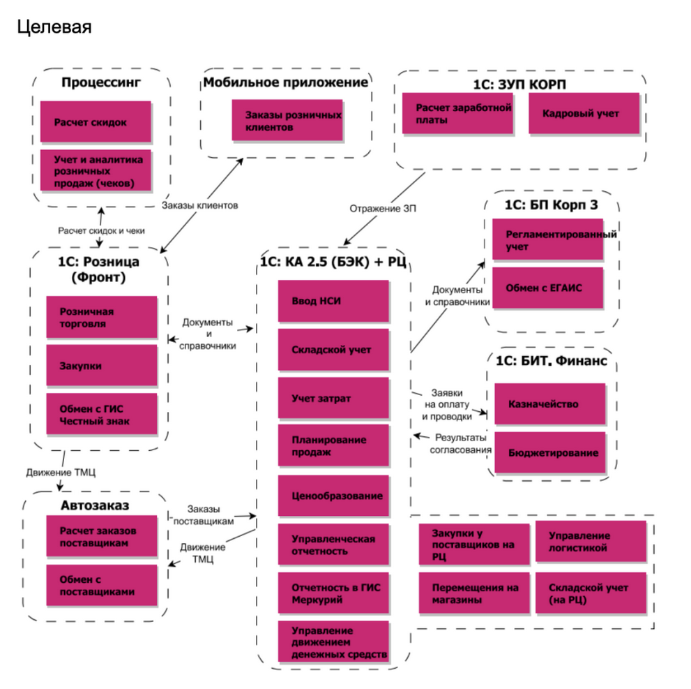 У компании появилась возможность разделить сеть магазинов на дивизионы, чтобы ускорить масштабирование и открытие новых торговых точек. Сократились сроки по созданию, реорганизации и ликвидации торговых точек и юридических лиц. Можно декомпозировать отчётность. Информация в необходимых разрезах по финансово-хозяйственной деятельности формируется в режиме онлайн. Сократились организационные расходы на содержание ИТ-инфраструктуры.