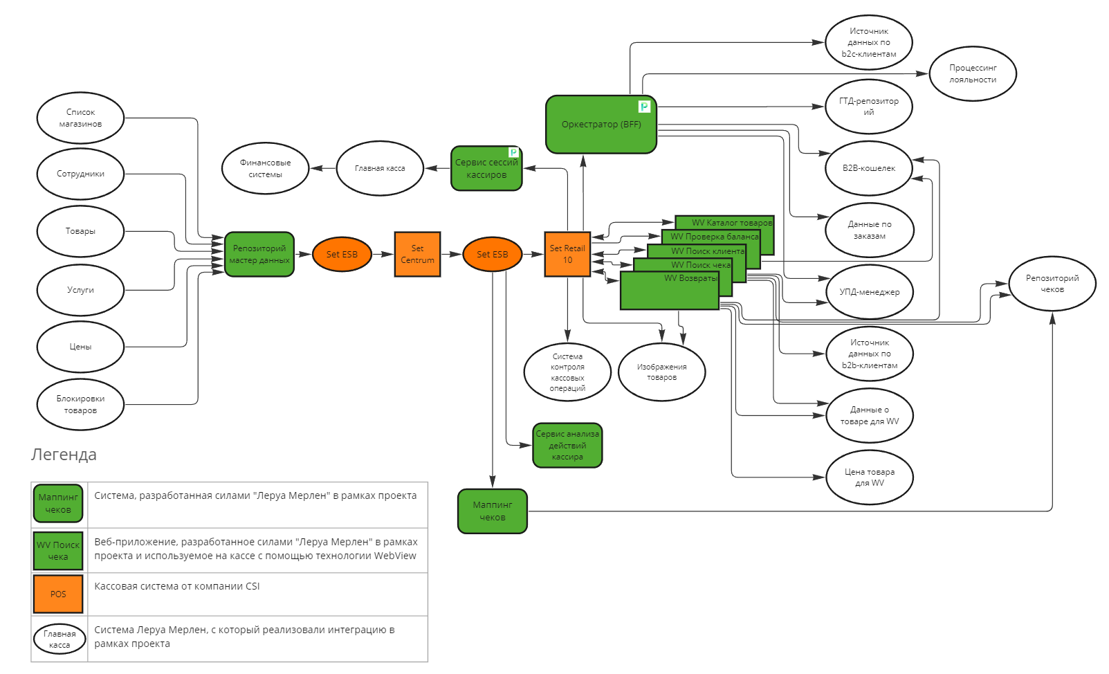 Сложный ИТ-ландшафт: интеграция нового кассового ПО с 19 ИТ-системами ритейлера (см. приложение).