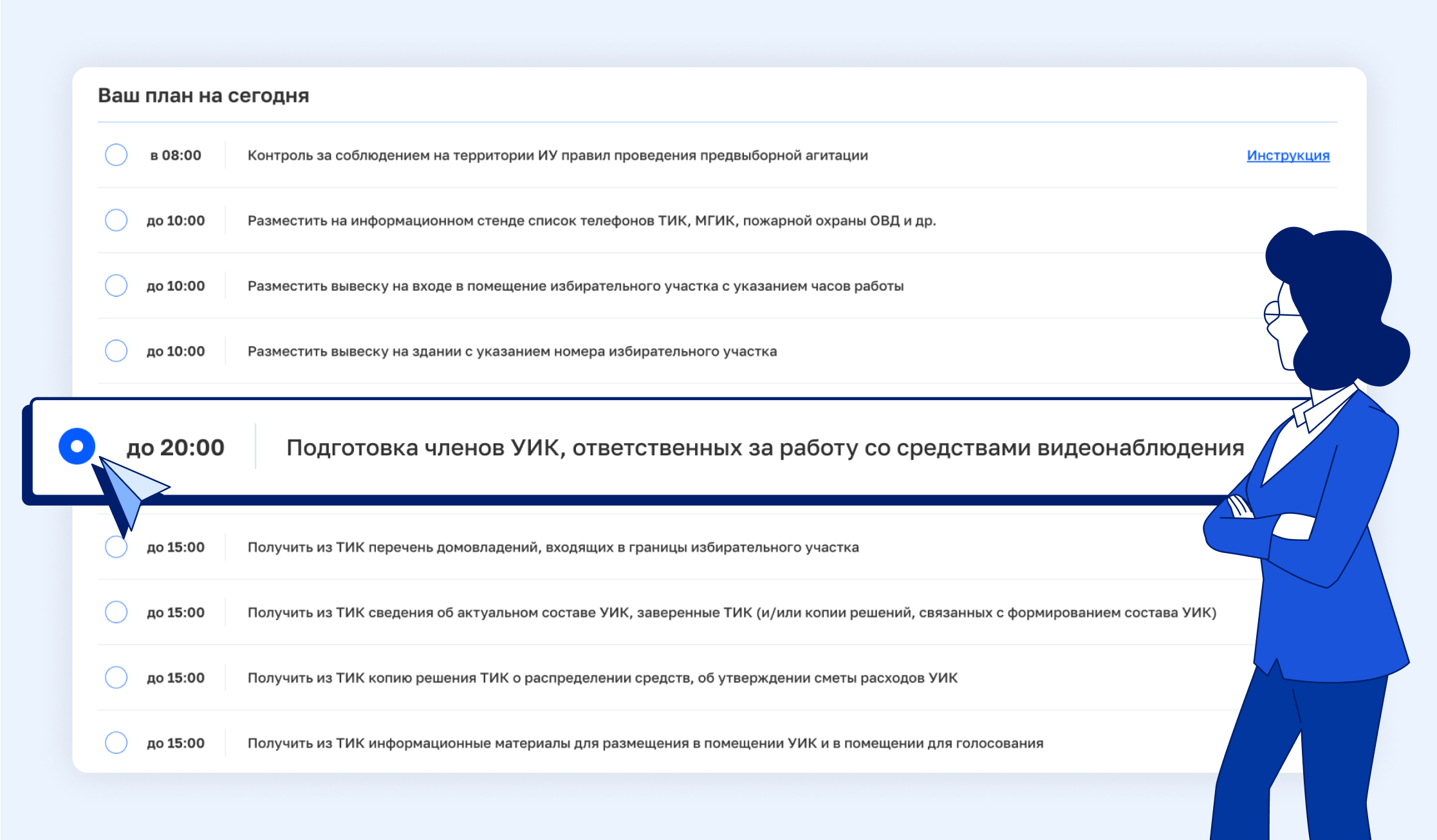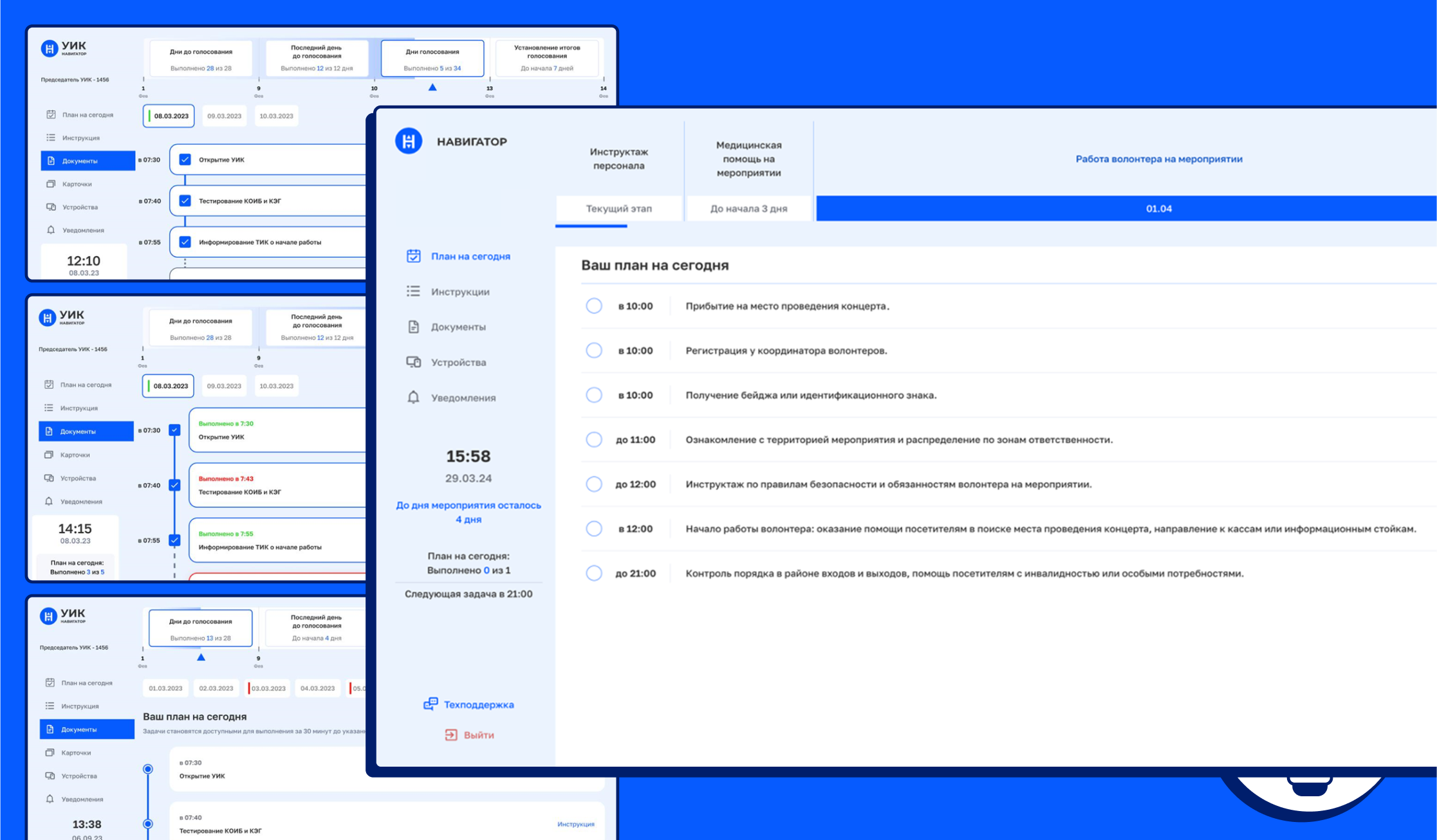 Мы позаботились о комфорте пользователей и проработали все ролевые модели, которые задействованы в процессе выборов: администратор, редактор, член УИК, председатель, заместитель и секретарь избирательной комиссии, супервайзер и хэлпер. Благодаря этому план работы структурируется для каждого сотрудника отдельно. Это делает трудовой процесс персонализированным, а значит — более эффективным и прозрачным.