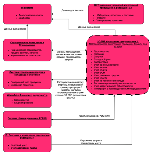 Произведён переход бизнес-процессов компании на использование комплексной информационной системы «1С:ERP Управление предприятием» + «1С:Производство алкогольной продукции. Модуль для 1С:ERP»