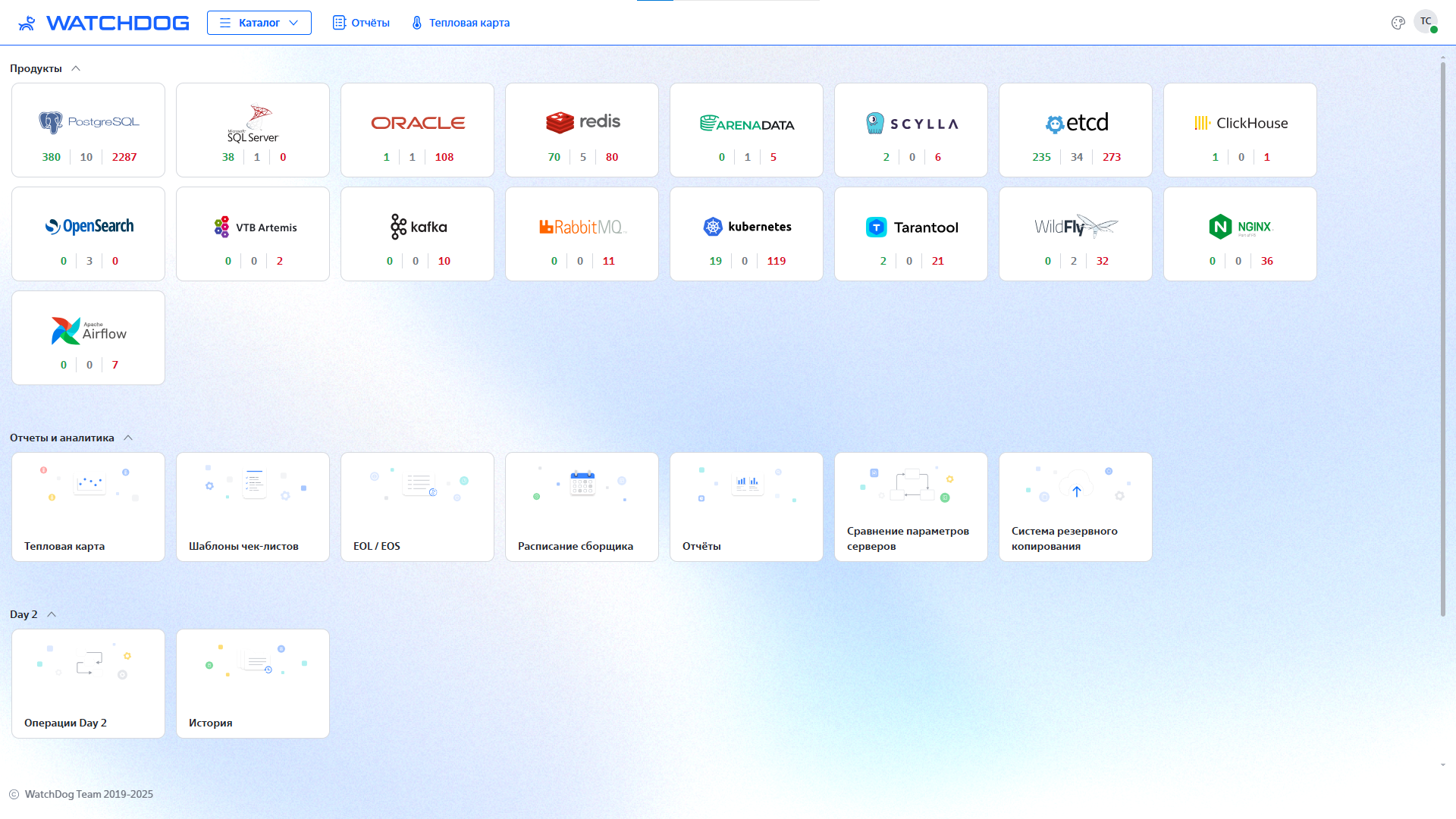 Сервис WatchDog (включая весь инструментарий) – прежде всего, закрытие нужд и потребностей dba, которые ежедневно выполняют типовые операции, решают инциденты, участвуют в ПСИ. Созданный dba для dba, прошедший путь от “БД инвентаризации” до полноценного “Портала” Надежности, ИБ, Архитектуры, представляет собой регулярный сбор всех параметров, их обработку (включая вычисления), вывод в удобный интерфейс. С возможностью “брать в работу”, “принимать в исключения”, настройками оповещений.