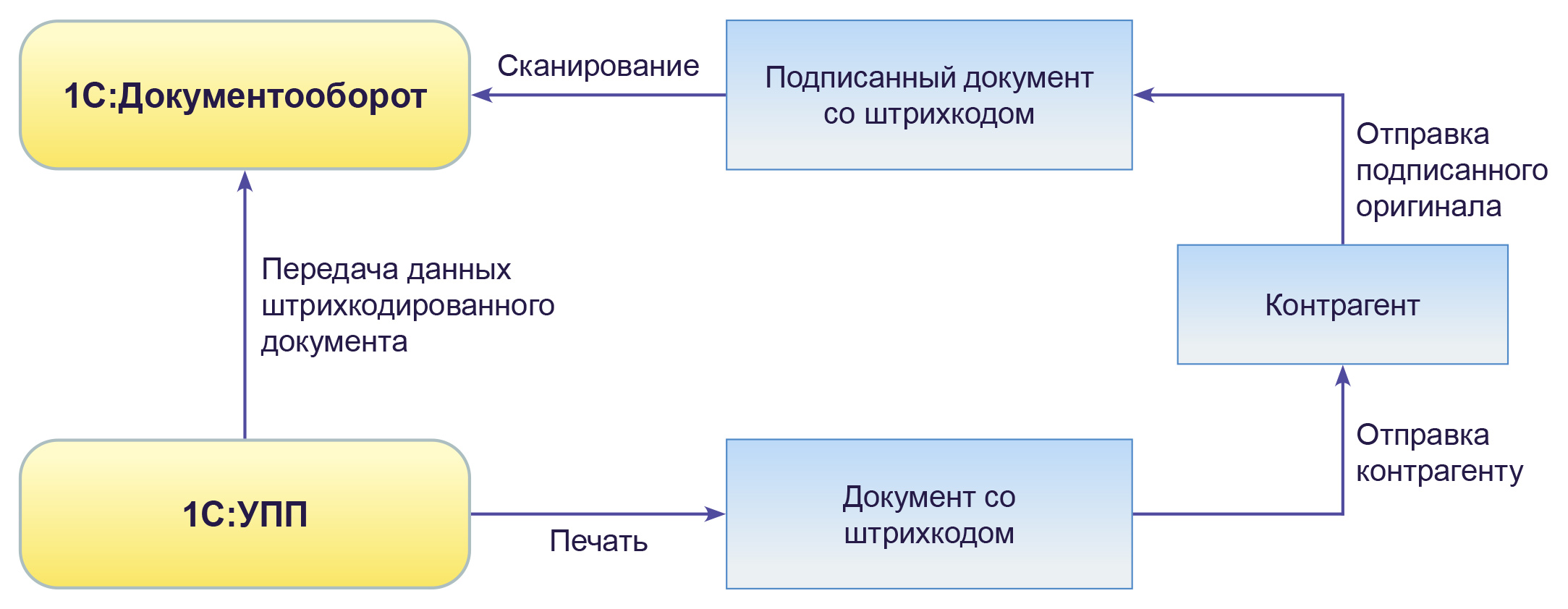 работы с первичными бухгалтерскими документами с использованием механизма штрихкодирования, рабочего места сканировщика и интеграции между 1С:Документооборотом и 1С:УПП;