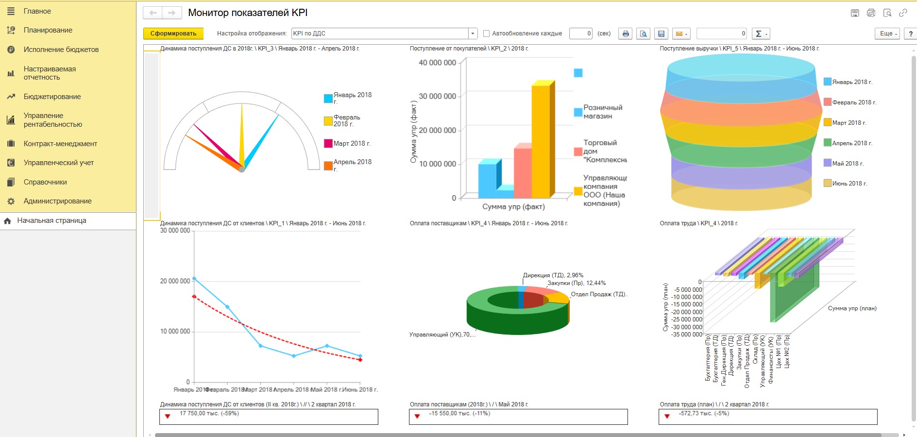 Проработаны и заведены единые для всех организаций статьи оборотов по бюджету, что позволило обеспечить единую структуру данных для формирования отчетности по движению денежных средств (БДДС, платежный календарь и др.) и контроля исполнения бюджета, а также возможность автоматического распределения платежей по нужным статьям оборотов, что важно для контроля лимитов, анализа исполнения бюджета и формирования заявок на расход денежных средств.
