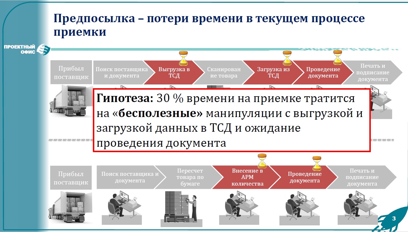 Из-за технических сложностей не только время персонала тратилось неэффективно, но и были проблемы с поставками. Каждому магазину «Командора» нужно принимать от 30 до 50 поставок в день, и при такой скорости работы приемщики просто не успевали обрабатывать необходимый объем. Из поставщиков выстраивались очереди, и в конце дня экспедиторы, чьи машины не успели разгрузить, либо оставляли неучтенный товар «под честное слово», либо уезжали вместе с ним. Второе приводило к недопоставкам и снижению товарооборота в итоге.