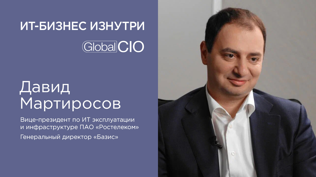 Давид Мартиросов - эксперт в области информационных технологий с 20-летним стажем работы в крупнейших корпорациях. В ПАО «Ростелеком» Давид управляет процессами поддержки пользователей и эксплуатации всех сервисов национального провайдера, развитием инфраструктуры и платформ, а также качеством услуг. Под его руководством проведена централизация и реструктуризация ИТ-функции в периметре оператора, выделены цифровые кластеры, включая ИТ-кластер. Кроме того, Давид Мартиросов возглавляет компанию-разработчика «Базис». Под его руководством, выручка вендора выросла в 10 раз, он занял лидирующие позиции в сегменте инфраструктурного ПО и успешно конкурирует с международными игроками. Более 120 государственных информационных систем и сервисов, а также более 700 компаний – уже используют решения «Базиса.